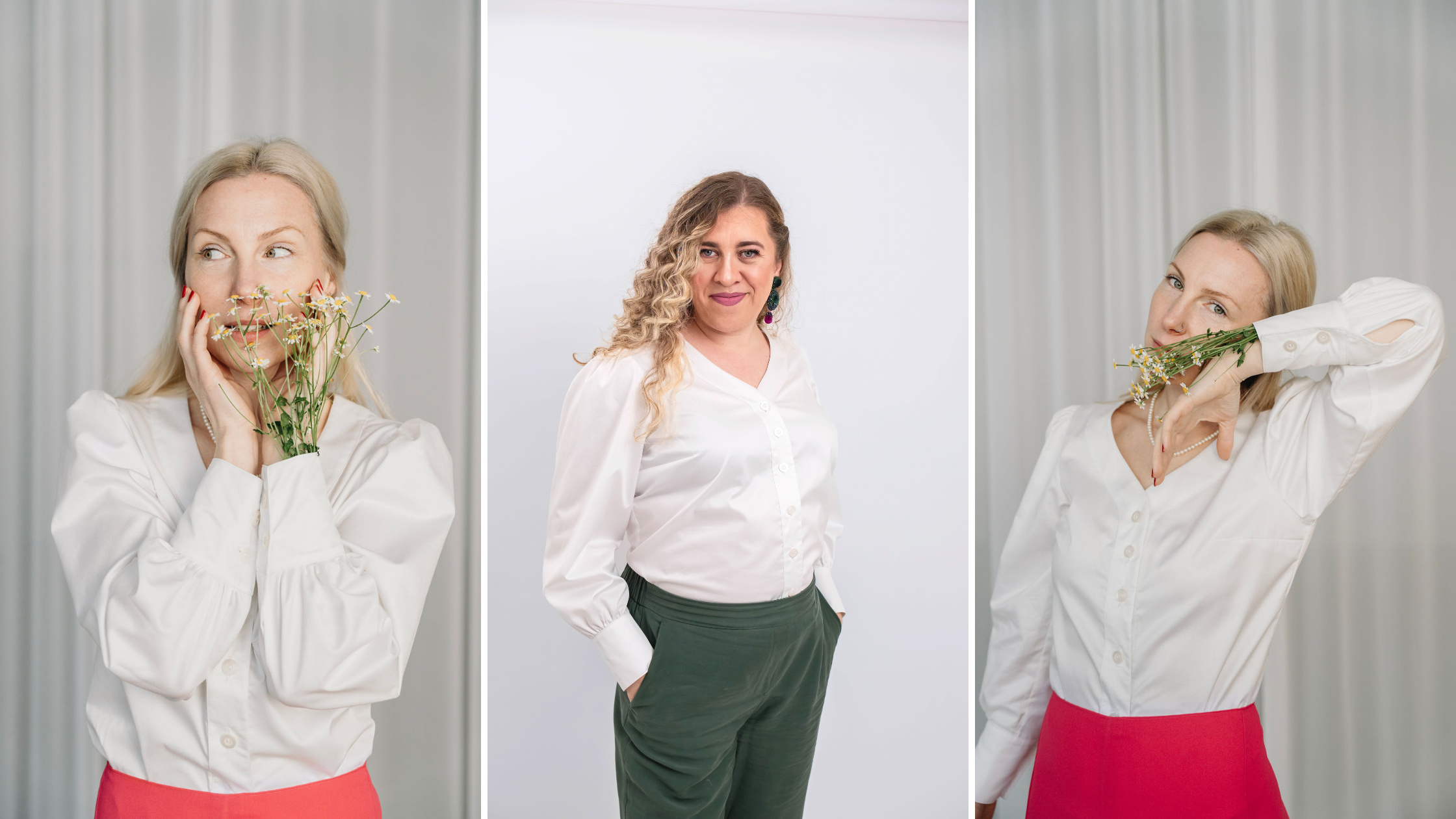 Ponúkame tri typy strihov, ktoré môžu byť ušité z bavlny, ľanu alebo lyocellu a nielen v bielej farbe látky: