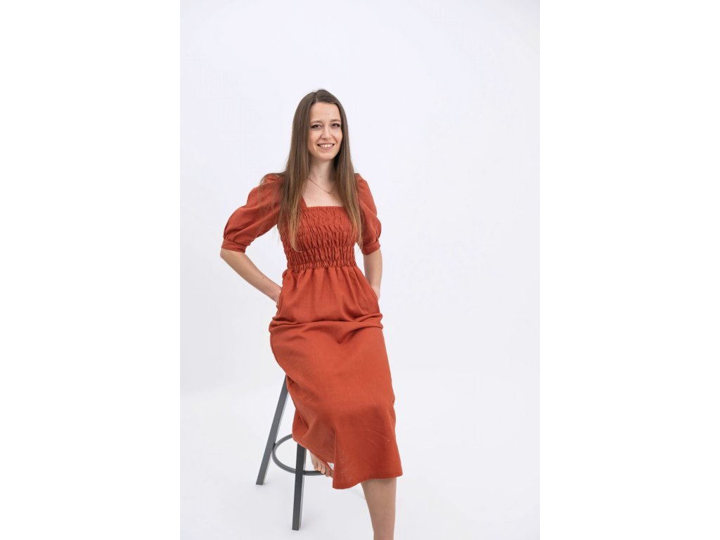 Ľahké, vzdušné, jednoducho ideálne na každý deň. Šaty MIRKA sú ženské, pohodlné šaty s elastickým riasením na hrudi a praktickými vreckami. Vďaka jednoduchému čistému strihu sa v nich budeš cítiť vždy pohodlne – a my Ti ich ušijeme na mieru presne podľa Tvojich rozmerov.