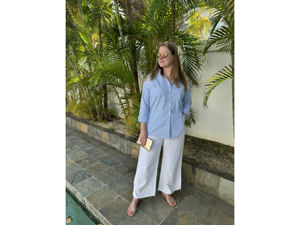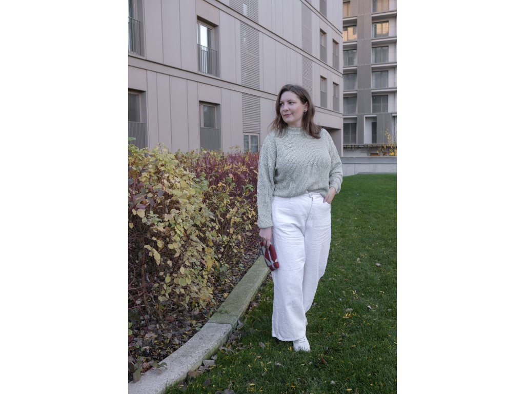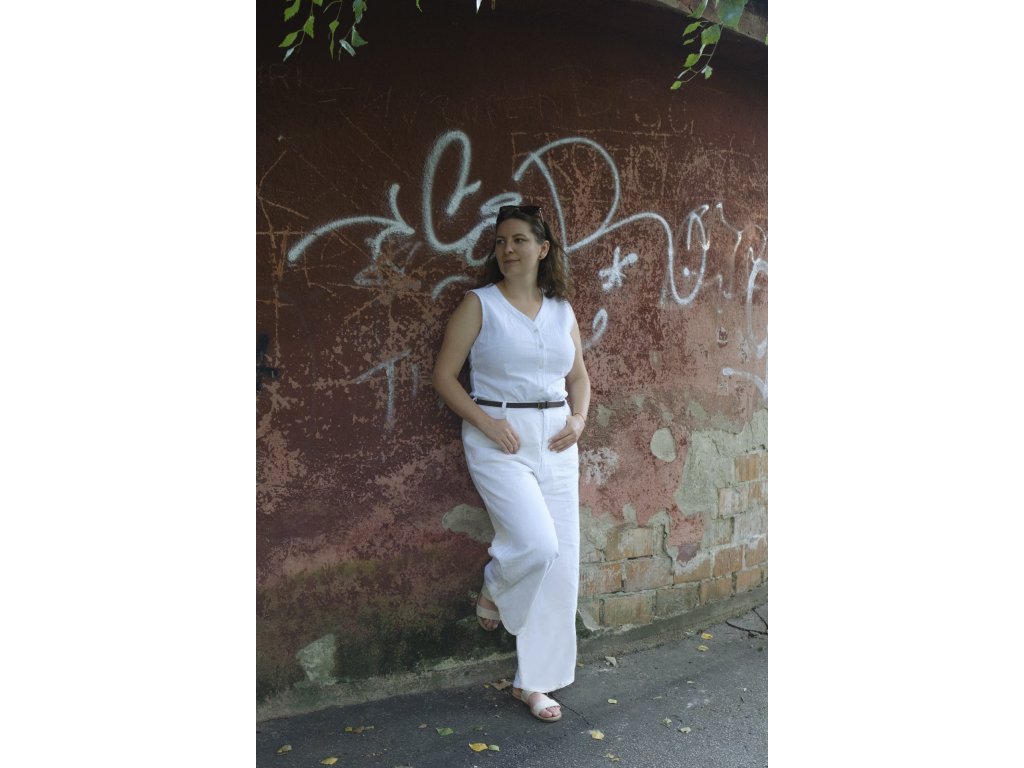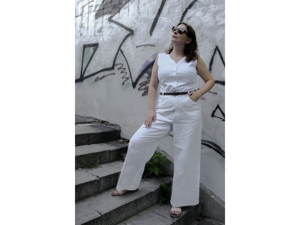 Voľné široké nohavice s vysokým pásom, vreckami a pohodlným strihom, ktoré ti ušijeme na mieru z látky podľa výberu – ľan, bavlna alebo riflovina.