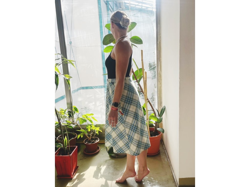 Sukňu JASMÍNA ti ušijeme na mieru z ľanu, bavlny alebo viskózy – podľa aktuálnej ponuky alebo tvojho výberu. Stačí si odmerať obvod pásu, bokov a želanú dĺžku sukne.